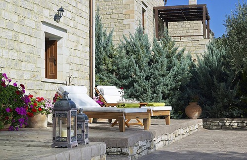 Villa Kyveli has emerged in a environment of lush greenery offering the best of the natural, Cretan way of life. A unique experience in a comfortable, private accommodation in the tranquility of a natural park with animals, orchards, trees and the nearby village offering Cretan cuisine at its best. Set amongst thickly wooded oak and cypress tree forest, the Vederi Estate carries on a history of hospitality and cultural heritage of rural Crete.The place to relax, to contemplate, enjoy the stunning landscape of Crete.Three traditional stone villas welcome you through all out the year, located only 6 km from the City of Rethymno and 1 km from the picturesque village of Prines.For all that come to this villa becomes their second home, their 'jardin sacre'.